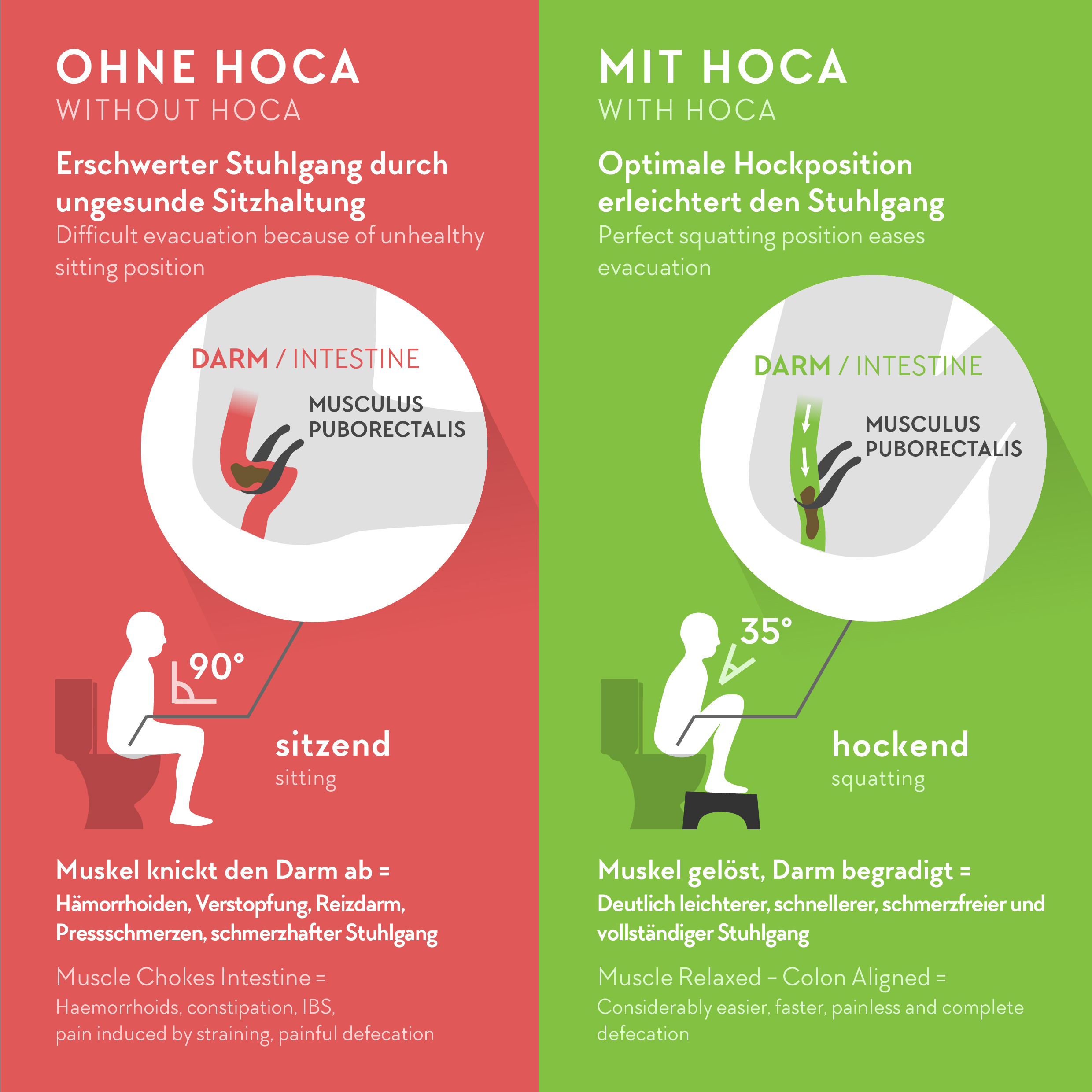 Ich bin restlos begeistert. Unglaublich, wie ein einfacher Hocker das tägliche Geschäft wieder schmerzfrei möglich macht. Ich habe gleich zwei gekauft, da er nun vor jeder Toilette stehen soll. In meinem Umfeld wird inzwischen ganz offen über Darmprobleme geredet. Nach anfänglicher Skepsis sind im praktischen Ausprobieren alle begeistert und wollen den Hoca auch für sich haben. Und ich freue mich, dass man mit dem Kauf ein Familienunternehmen unterstützt. Sehr freundlicher Kontakt. Dankeschön!