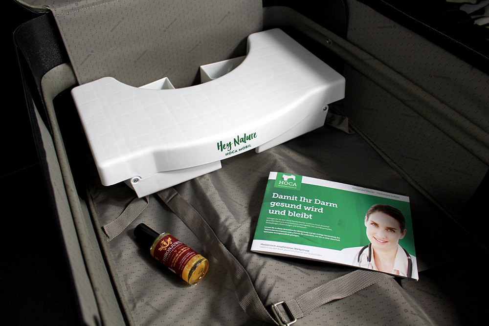 Ich benutze schon einen weile das Standardmodell des HOCAs und habe nun ausgiebig auch die mobile Version getestet. Ohne möchte ich nämlich auch nicht mehr in den Urlaub fahren oder auch nur meine Eltern besuchen (denen ich wohl bei nächster Gelegenheit noch einen eigenen Hoca zukommen lassen werden). Der Toilettenhocker hat mein Leben wirklich sehr erleichtert und meine Probleme mit Verstopfung - und den einhergehenden Schmerzen - aufgehoben. Auf das Produkt bin ich gestoßen, als ich Darm mit Charme von Guilia Enders gelesen habe. Lange Rede, kurzer Sinn: Ich mag gar nicht mehr ohne und bin begeistert, dass ich meinen Toilettenhocker jetzt überall hin mitnehmen kann. Der Hocker ist in sekundenschnelle auseinander geklappt und einsatzbereit!